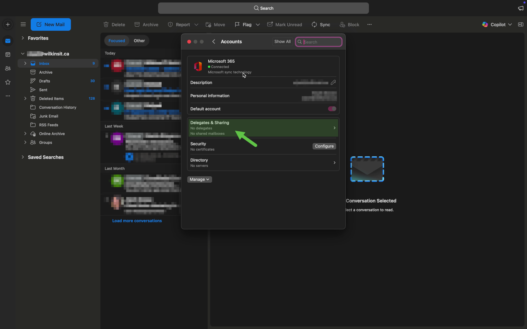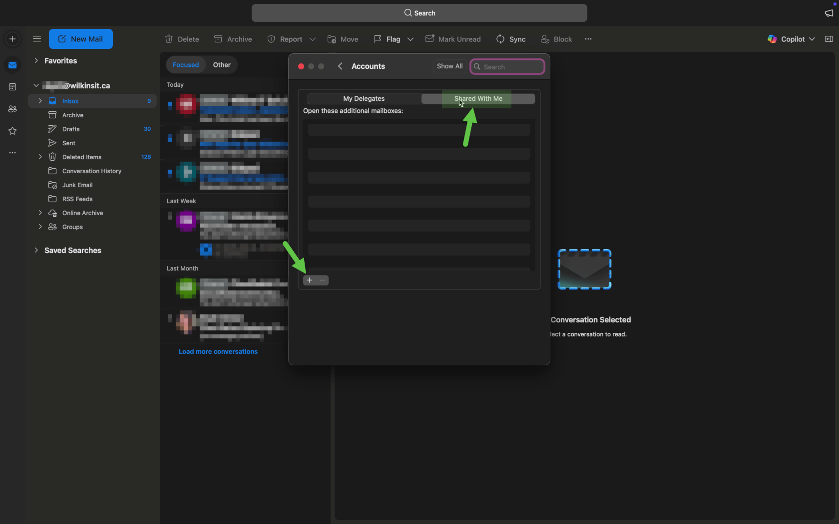 - Click on Delegates & Sharing and then click the Shared With Me tab and then click the + button found in the bottom-left of the window